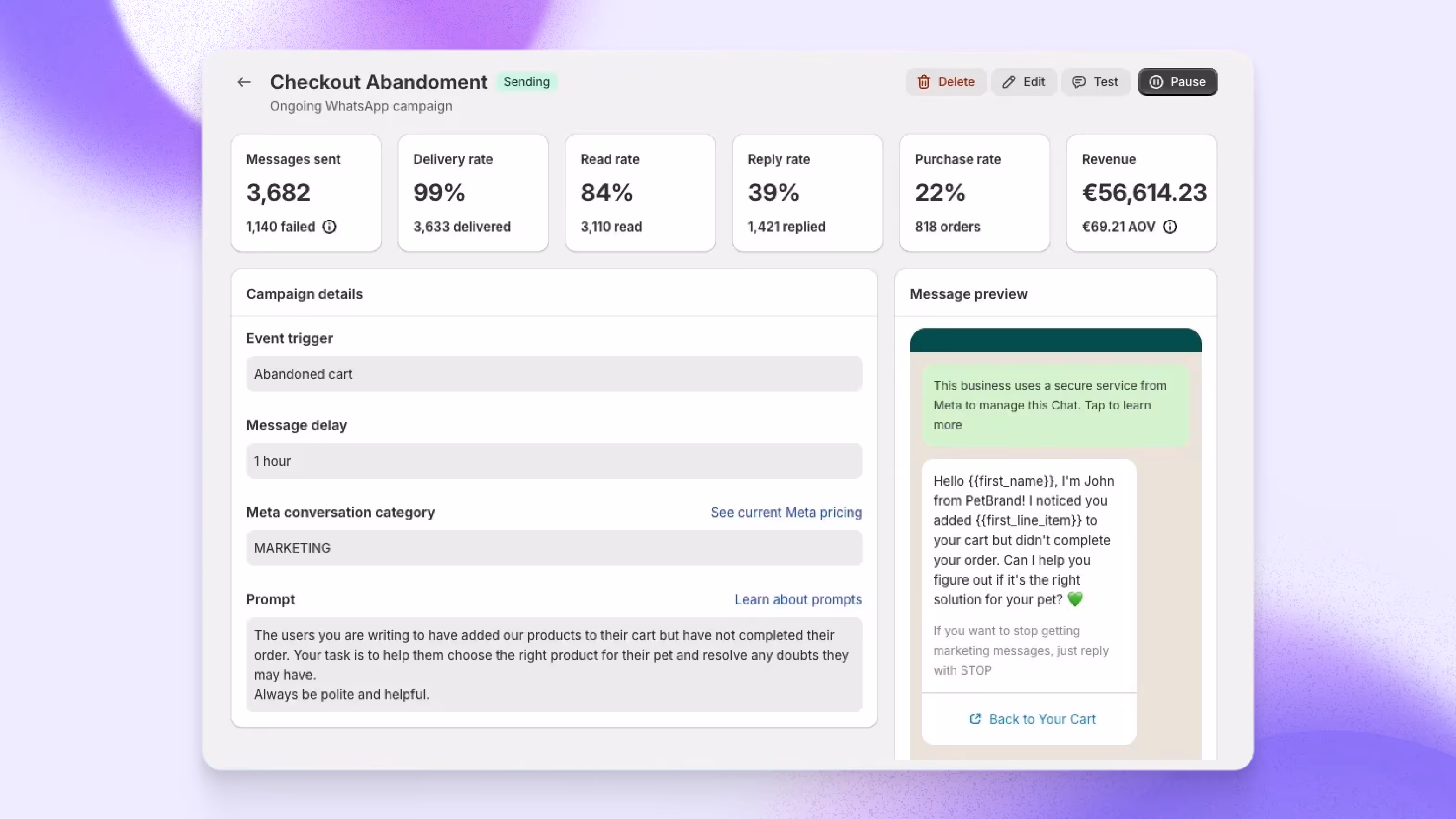 - Personalized abandoned cart recovery messages to encourage customers to complete their purchase.