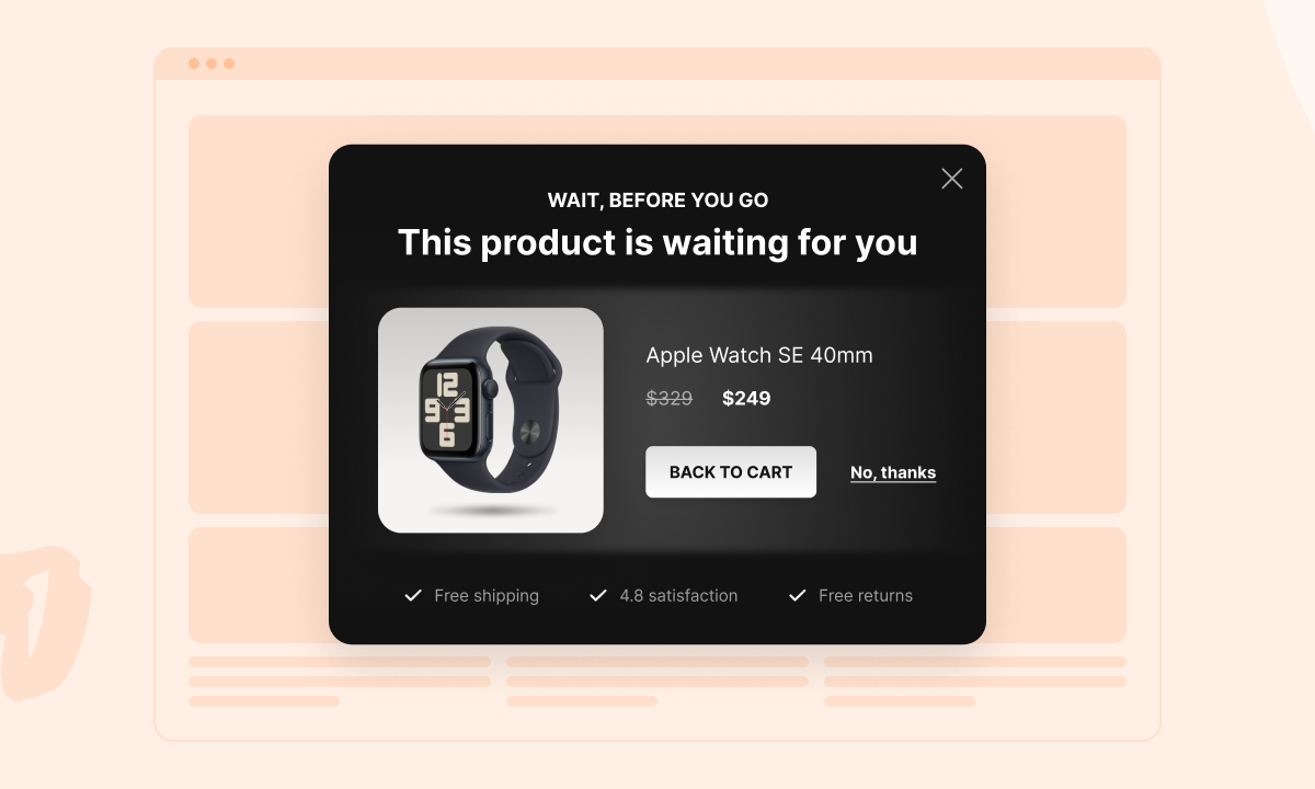 Exit-intent reminders work best when they focus on reassurance rather than discounts, especially at the exact moment hesitation appears. By reminding shoppers of the items they are about to leave behind and addressing common points of hesitation—such as delivery costs, return policies, or trust signals—brands can reduce abandonment at the moment doubt surfaces.