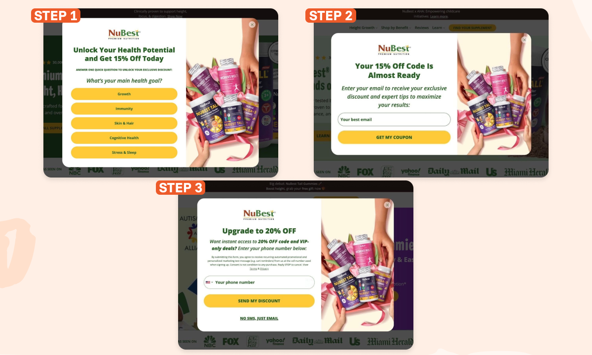 Multi-step popups perform better because they reverse the usual order of commitment. Instead of asking for an email address immediately, they start with a low-effort interaction, such as a simple question or a value-based hook. Once the visitor engages, the incentive is revealed and the subscription feels like a continuation rather than a decision.