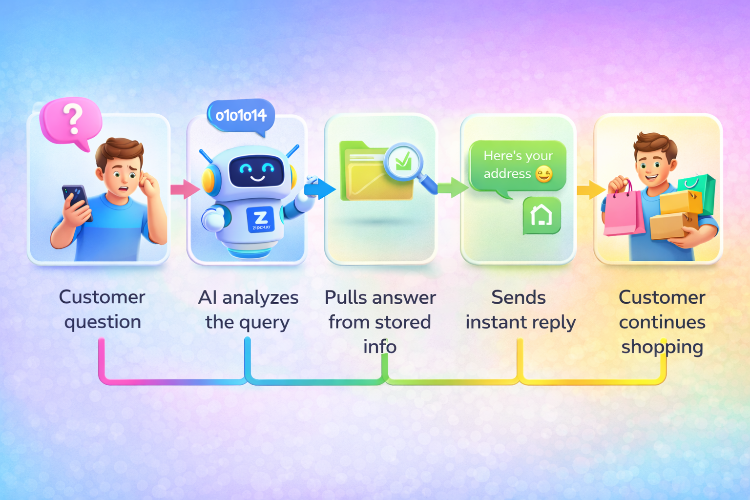 By answering questions during checkout, automation helps reduce cart abandonment. Tools like Zipchat can proactively step in when shoppers hesitate.