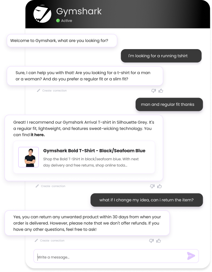 Encountered a reply that doesn’t hit the mark? Simply “correct” it. This isn’t about pointing out mistakes but guiding the AI to better understand your brand’s context and nuances.