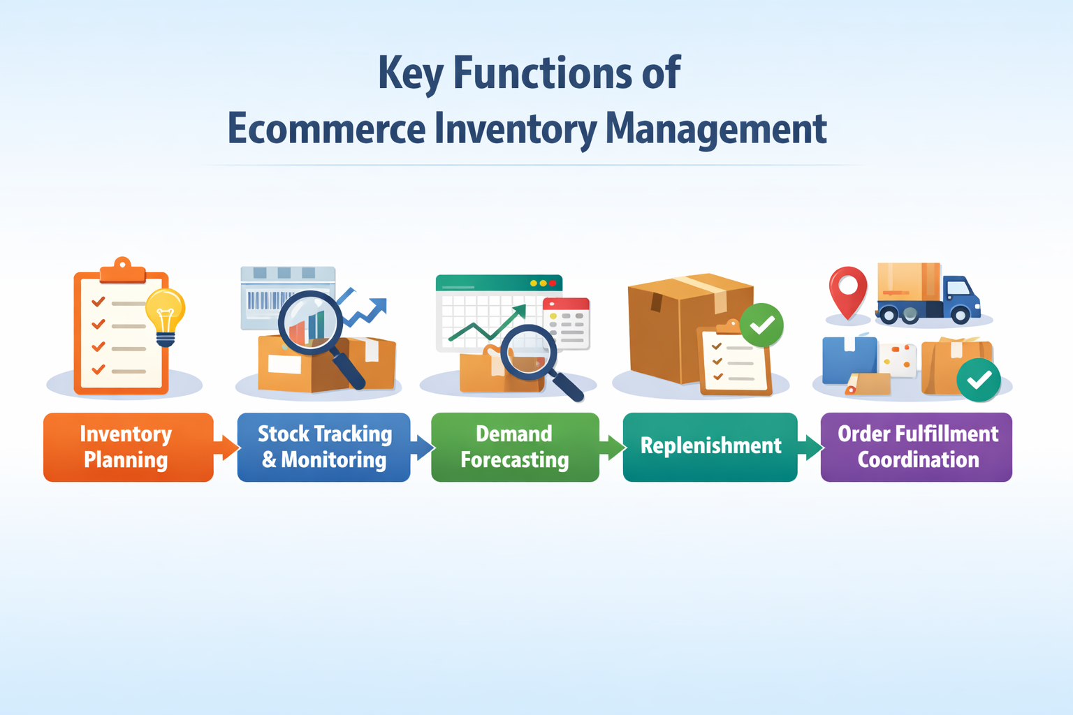Ecommerce inventory management is the process of planning, tracking, and controlling product stock across online sales channels to meet customer demand without running out of items or overstocking. It ensures that the right products are available at the right time and in the right quantities.