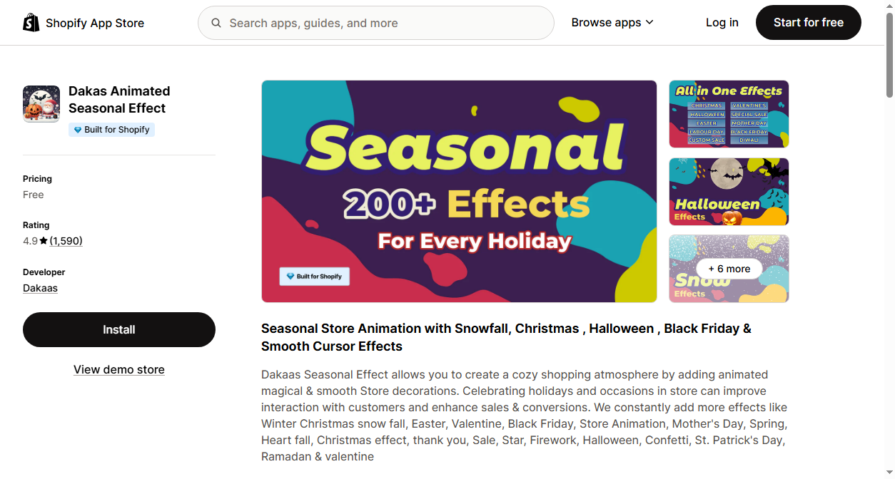 Dakaas Animated Seasonal Effect helps you decorate your Shopify store with festive animations. You can add snowfall, Halloween effects, Black Friday themes, confetti, fireworks, and smooth cursor effects. It instantly makes your store feel lively and seasonal.
