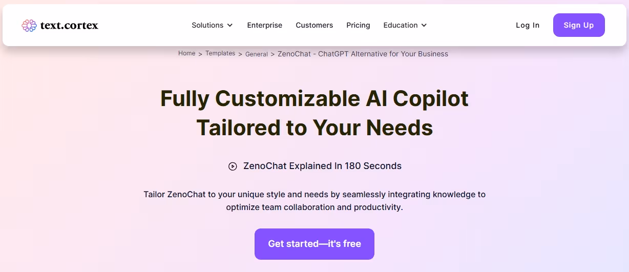 2. ZenoChat (TextCortex) — Best for AI writing and conversational tasks