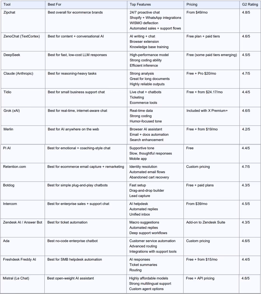 If you’re looking for the best all-around AI chatbot for real business impact, Zipchat stands out as the clear leader. While many tools focus on creativity, research, or general AI conversation, Zipchat is engineered specifically for ecommerce growth and customer experience, the areas where automation actually moves revenue.