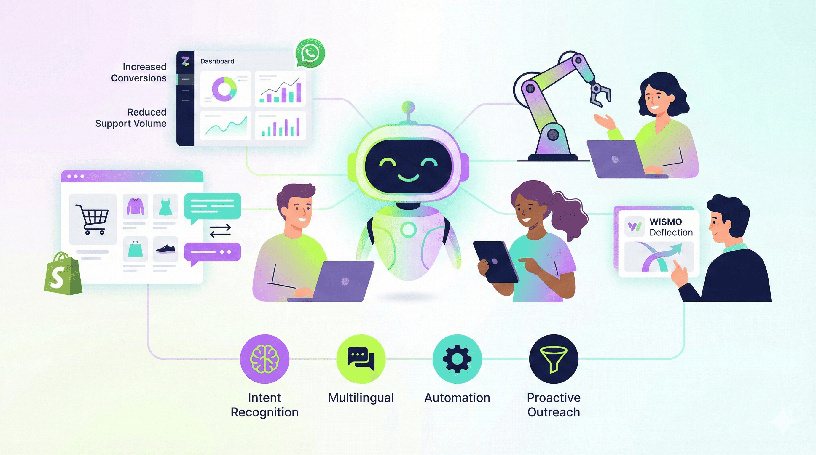 Zipchat leads the way here, thanks to its native Shopify and WhatsApp support, proactive customer messaging, and automated WISMO deflection, which reduces ticket volume.