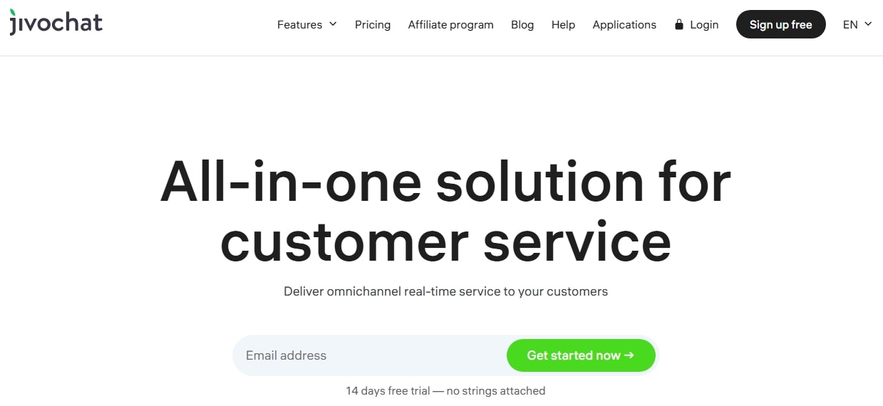 JivoChat is a multichannel communication hub designed for ecommerce teams that talk to customers on multiple communication channels. Its strongest advantage is the unified inbox, which merges chat, WhatsApp, Facebook Messenger, and email into one screen.