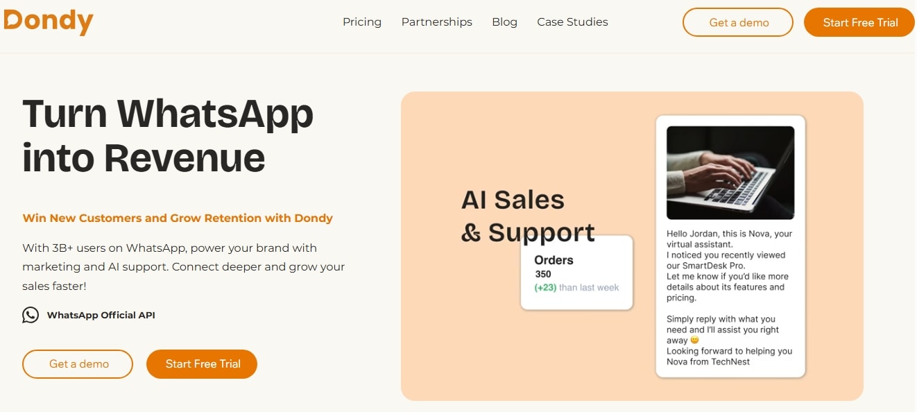 | Dondy | Promoted as a chat/communication platform; likely offers basic live-chat, visitor messaging, and support features. | Free plan available + paid plans start from $6.99 (Pro). | N/A |