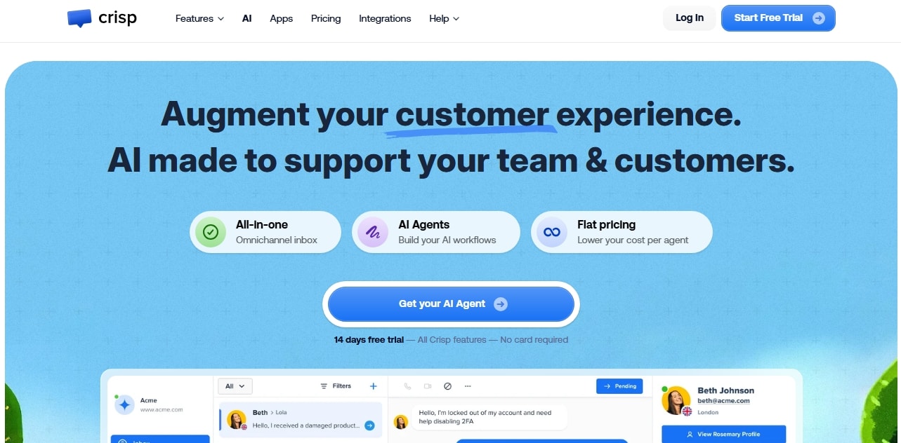 3. Crisp — best for hybrid human + bot sales conversational AI