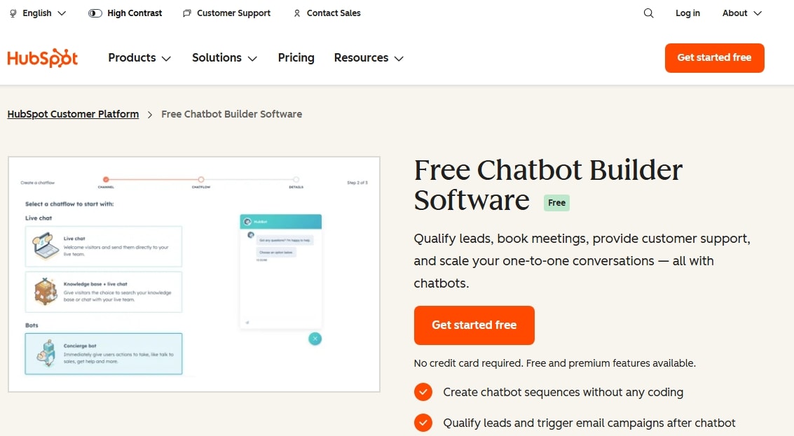 HubSpot’s chatbot is tightly integrated with its CRM, making it ideal for teams who want chat flows that instantly enrich contact records and trigger workflows.